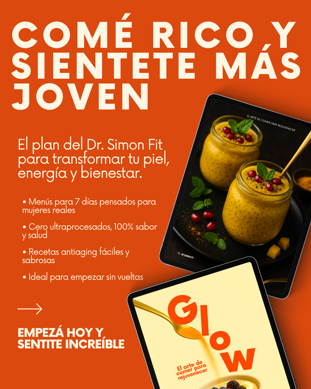 GLOW fue creado por el Dr. Simon Fit, con un enfoque centrado en educación práctica, hábitos sostenibles y decisiones con criterio. Aquí la idea no es “perfección”: es darte una guía clara para que la alimentación se convierta en un ritual que apoya tu piel, tu energía y tu bienestar desde adentro, sin extremos.